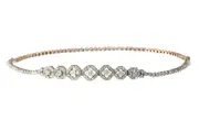 This remarkable Victorian creation, circa 1870, offers a versatile transformation from two bracelets into a captivating dog-collar necklace. Crafted in 18K red gold with silver details, the piece showcases a dazzling display of 173 diamonds. The ornate bracelet features seven old mine brilliant-cut diamonds, totalling approximately 1.50 carats, alongside 110 rose-cut diamonds and senailles. The unadorned bracelet adds another 56 rose-cut diamonds and senailles, all harmoniously arranged to evoke the grandeur of the Grand Victorian period. This jewel offers the wearer the freedom to style it as a striking necklace or as two elegant bracelets, blending opulence and adaptability with ease. A true conversation piece, it is a testament to 19th-century craftsmanship and destined to captivate collectors and enthusiasts alike.