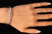 This exquisite 1920s Art Deco bracelet captures the spirit of a transformative era with geometric precision and timeless elegance. Rendered in 18K white gold, its design highlights a central motif adorned with a dazzling constellation of 67 natural diamonds. The brilliance extends gracefully beyond the centrepiece, with stones meticulously set along the bracelet’s arching form, shimmering as they flow around the wrist. The interplay of old brilliant and single cut diamonds, enhanced by delicate milgrain accents, evokes both luxury and artistry. A wearable masterpiece from the Roaring Twenties, this bracelet embodies modernity, glamour, and artistic revolution.