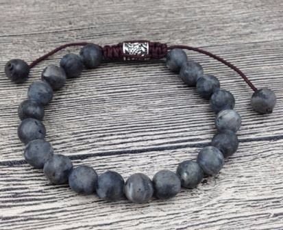 ?Deze armband is gemaakt van matte labradoriet en heeft een stevige schuifknoop en is daardoor makkelijk aan en uit te doen. De kralen hebben een diameter van circa 8 mm.