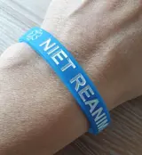 Siliconen armband met de tekst niet reanimeren en een medisch symbool. Deze is helemaal rond, dus zonder sluiting. Deze kost € 4,50.