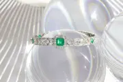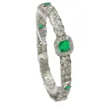 An exquisite Art Deco platinum bracelet from the 1920s, adorned with numerous diamonds and featuring a magnificent central emerald. This bracelet encapsulates the timeless allure of the Art Deco era, radiating elegance and beauty that transcends the ages.