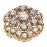 An exquisite Victorian brooch, originating from Belgium and crafted circa 1920, unites the era's penchant for ornamental richness with the subtle gleam of 25 rose cut diamonds set in 18k pink gold and silver. This piece, touched by the finesse of foil setting, reflects a period of artistic cross-cultural explorations and the dawning of styles such as the Arts and Crafts movement. Though the maker's mark remains a mystery, the piece's heritage is unmistakably rooted in the historical depths of Victorian jewellery artisanship.