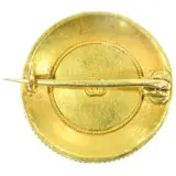 As with this 18K yellow gold Victorian brooch, the Italian jewellery brand "Castellani" is a master in towing anyone along to an ancient place where time stood still. The white with blue centre is of exquisite detailed micro mosaic, composed in small square pieces of enamel threads -also called "smalti falti" in Italian. Various gold filigree patterns beam from around the archaic middle. In any means, the letters EY stand for a gesture of caress whether in Greek "Good Health" or in English "Eternally Yours".