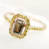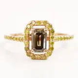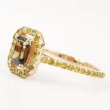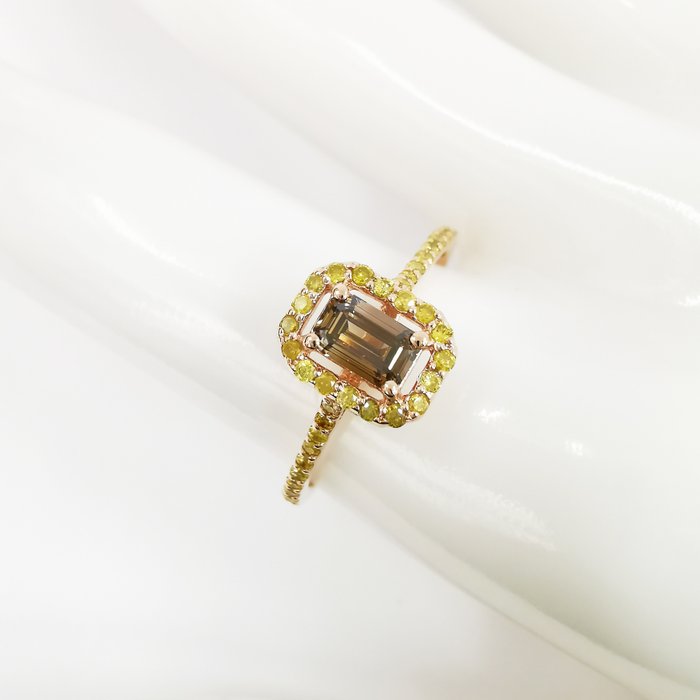 14k roségoud 0,40 ct vs fancy diepbruin & 0,36 ct fancy intens gele diamanten designer halo ring