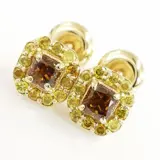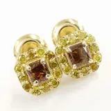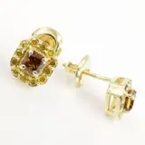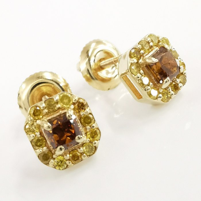 14k geelgoud 0,50 ct vs fancy diep bruinachtig oranje & 0,30 ct fancy intens gele diamanten designer halo oorknopjes