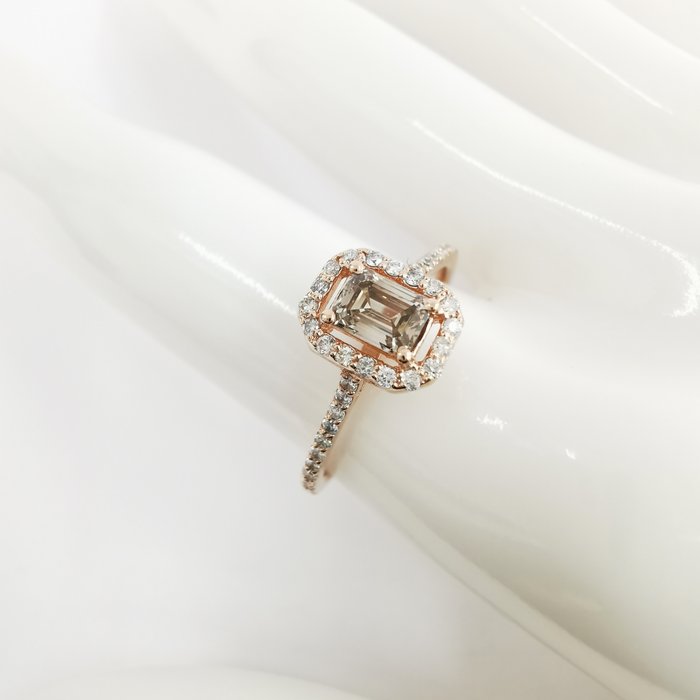 14k roségoud 0,50 ct vvs fancy lichtgrijs & 0,30 ct vs diamanten designer halo ring