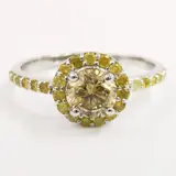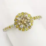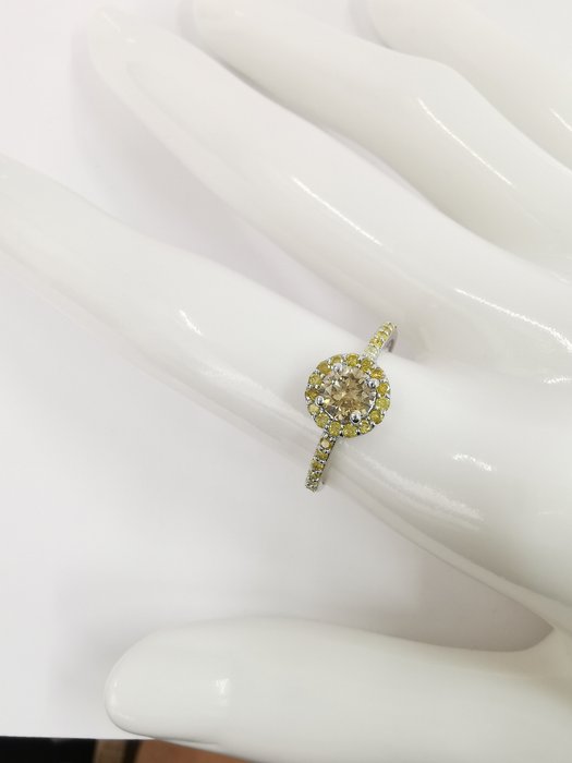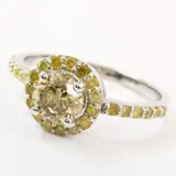 14k witgouden 0,53 ct fancy grijsachtig geel & 0,30 ct fancy intens gele diamanten designer halo ring