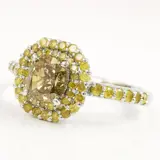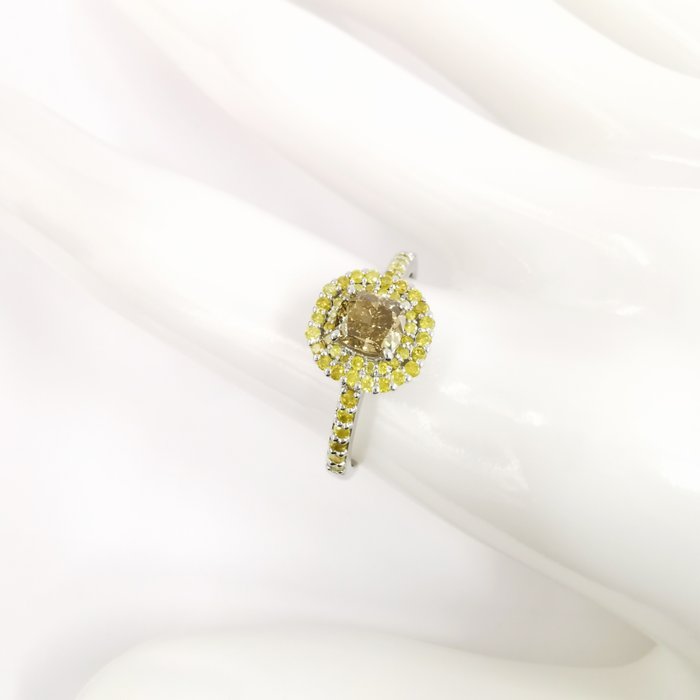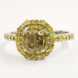 14k witgoud 0,60 ct vs fancy bruinachtig geel & 0,50 ct fancy intens gele diamanten designer dubbele halo ring