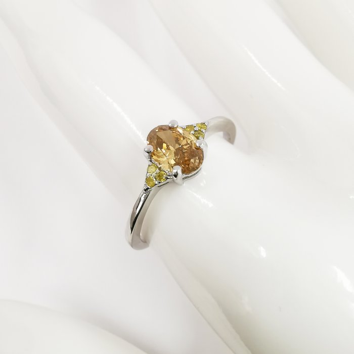 14k witgouden 0,60 ct vs fancy diepbruin oranjegeel & 0,06 ct fancy levendige gele diamanten designer solitaire ring