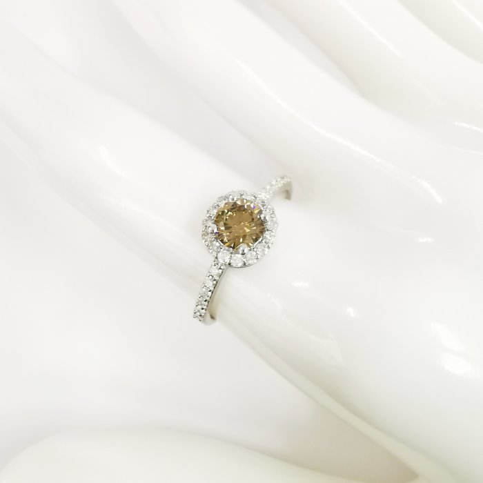 14k witgouden 0,61 ct vs fancy geelachtig bruin & 0,36 ct vs diamanten designer halo ring