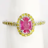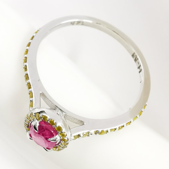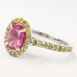 14k witgouden 0,80 ct roze saffier & 0,50 ct fancy intens gele diamanten designer halo ring