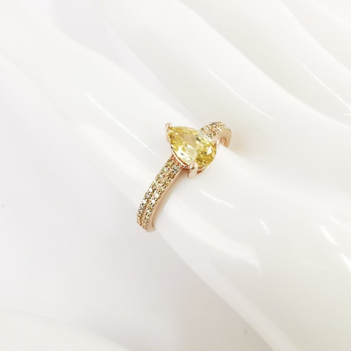 14k roségoud 0,90 ct vs fancy geel & 0,30 ct vs gemengde kleur diamanten designer solitaire ring