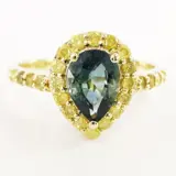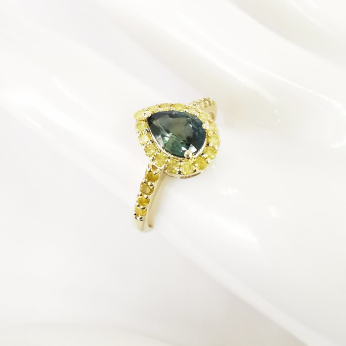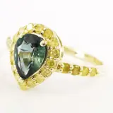 14k geelgouden 1.00 ct blauwe saffier & 0.40 ct fancy levendige gele diamanten designer halo ring
