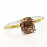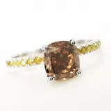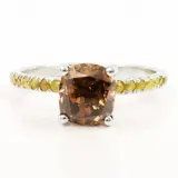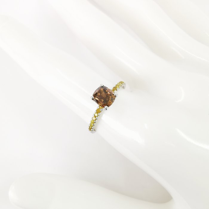 14k witgouden 1.00 ct fancy diep oranjebruin & 0.26 ct fancy intens gele diamanten designer solitaire ring