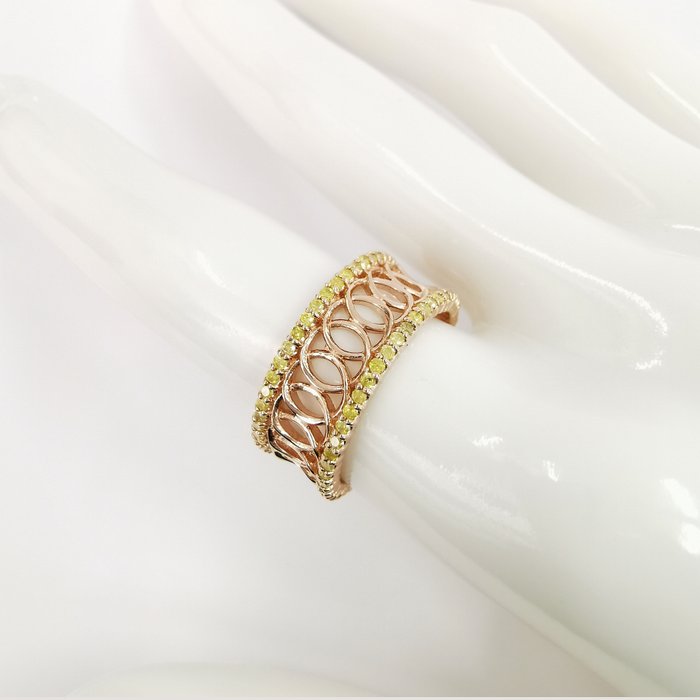 14k roségouden designerring met 1,00 ct fancy intens gele diamanten