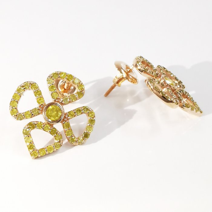 14k roségoud 1,00 ct fancy levendig geel en 0,20 ct fancy intens gele diamanten designer oorknopjes