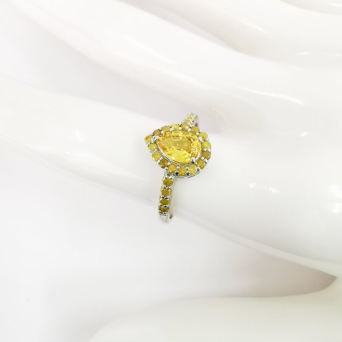 14k witgouden 1.00 ct gele saffier & 0.52 ct fancy intens gele diamanten designer halo ring