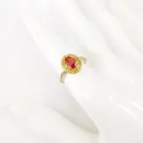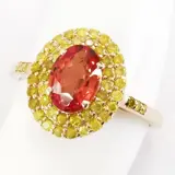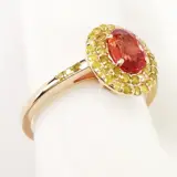 14k roségoud 1,08 ct oranje saffier en 0,44 ct fancy levendige gele diamanten designer dubbele halo ring