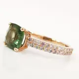 14k roségoud 1,26 ct groene saffier en 0,38 ct mooie roze diamanten designer ring