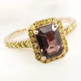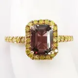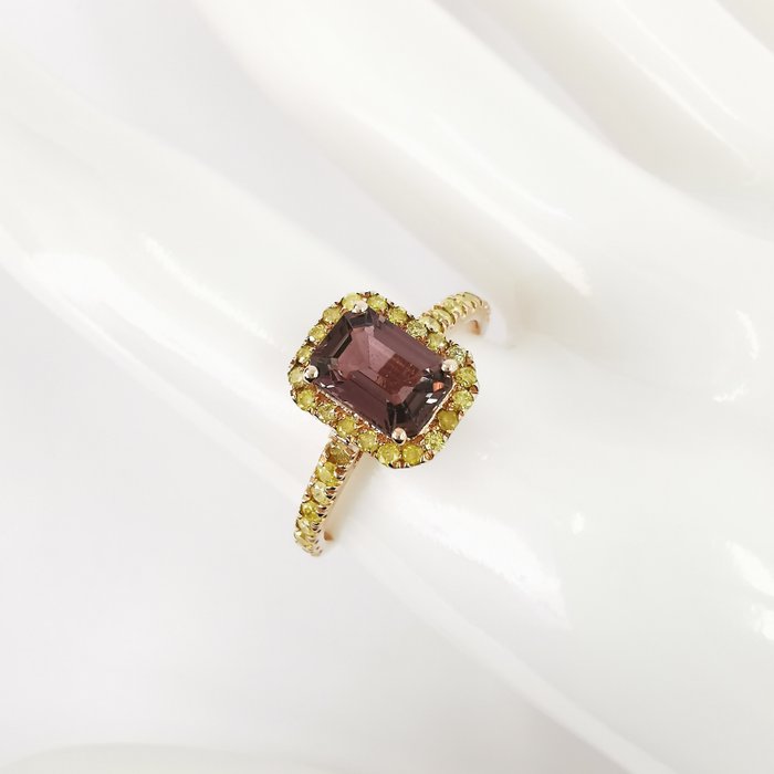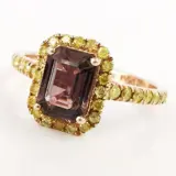 14k roségoud 1,33 ct paarse saffier en 0,36 ct fancy levendige gele diamanten designer halo ring