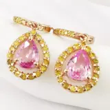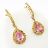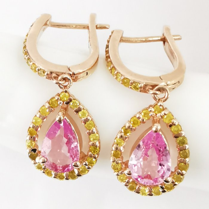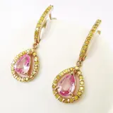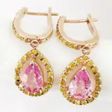 14k roségoud 1,51 ct roze saffier en 0,60 ct fancy levendige gele diamanten designer bengelende oorbellen