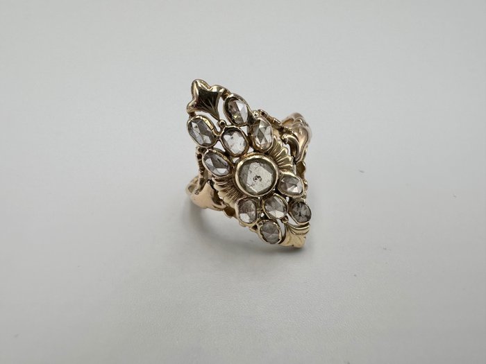 Antieke ring met roosgeslepen diamanten in 14k goud (niet gemerkt zuurbestendig)