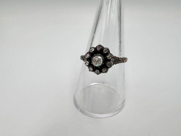 Antieke ring met roosgeslepen diamanten in 14k goud en zilver