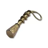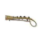 Broche in de vorm van een horlogesleutel, met gegraveerde details. Merkje voor 14k goud. Maat: 43 x 12 x 6 mm.
