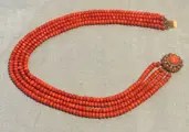 Prachtige 100% echte antieke kostbare bloedkoraal choker ketting met vier strengen.