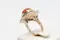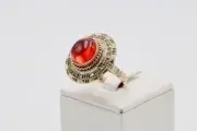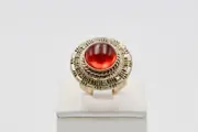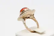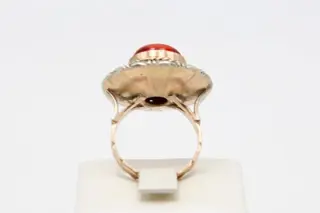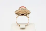 Ring in 14K geel goud een prachtige centrale barnsteen omgeven door diamanten.