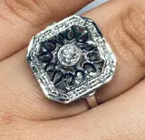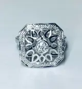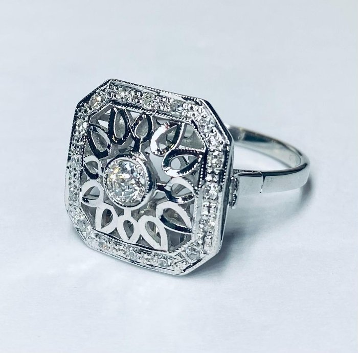 Aanwezig in het midden een oud geslepen diamant van 0.25 ct H kleur VS.
