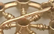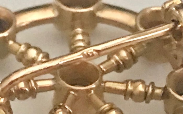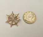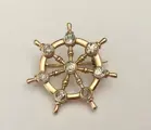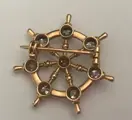 Laat 19e-eeuwse broche in gemerkt 18-karaats geelgoud in de vorm van een scheepswielset met 8 kleine diamanten (ongeveer 0,76 karaat)