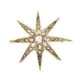 8-puntige stervormige broche in 18 kt 750/1000 geelgoud met 41 rozetgeslepen diamanten, totaal 2,45 ct.