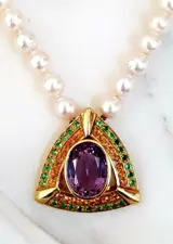 En 27 natuurlijke groene (demantoïde) granaten en 24 natuurlijke oranje (spessartite) granaten.
