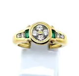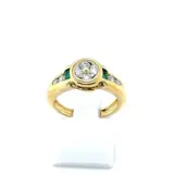 • 18K 750 geelgouden ring met diamant/smaragd - (getest en gegarandeerd)