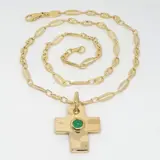 Latijns kruis van 7,94 g, vervaardigd door metaal te gieten (ingottype), met agaat van 4,20 mm en een gewicht van 0,28 karaat.
