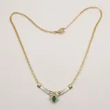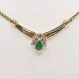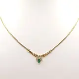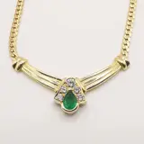 collier in 18 karaat geelgoud 44 cm bezet met 1 peervormige smaragd van circa 0.60 ct en 1 diamant van circa 0.15 ct in briljant geslepen kleur G VS