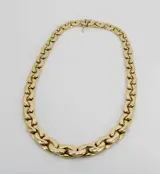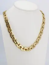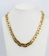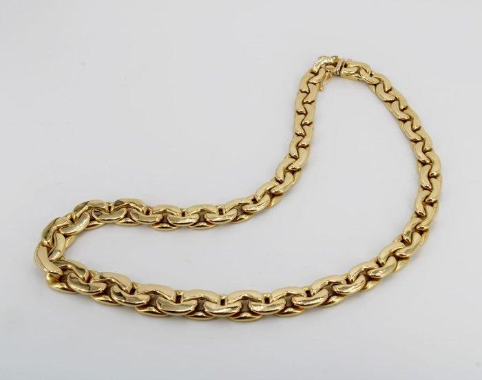 18 kt geelgouden collier met een gewicht van 58,18 gram, lengte 46 cm. Gouden herkenningstekens en meesterteken zijn aanwezig. Het juweel wordt verzonden in een geschenkdoos en vergezeld van het garantiecertificaat van de winkel. Verzending is verzekerd en traceerbaar via FedEx of UPS koerier.