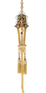 Soort juweel: Vintage antieke 18K two tone gouden chatelaine horlogeketting met kwastjes