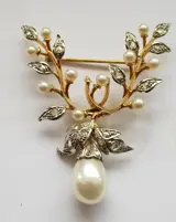 18 karaat Geel goud, Platina - Broche Natuurlijke parel - Diamanten