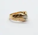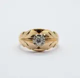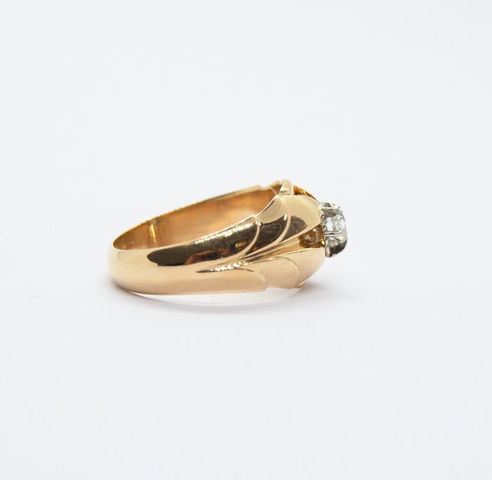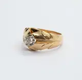 Ring type Solitaire handgemaakt in 18-karaats geelgoud met witgouden aanzichten.
