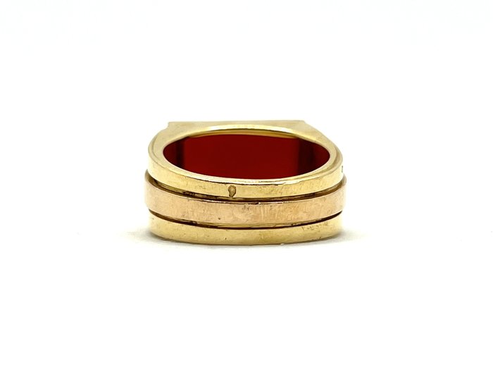 Zegelring in 18K roségoud en geelgoud bezet met een carneool plaquette