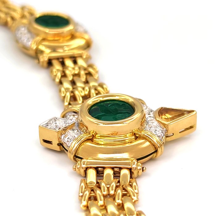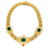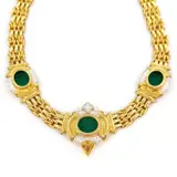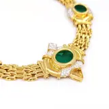 Collier in geelgoud, 18 karaat witgoud met 73 diamanten van in totaal 1,80 ct en glasachtige stenen van elk 3,00 ct