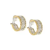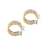 Oorringen in 2 kleuren 18 kt (750/1000) goud, opengewerkt met de randen in geelgoud en het middendeel in witgoud met 38 briljant geslepen diamanten: elk 14 x 0,05 ct