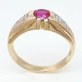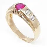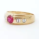 18k two tone gouden solitaire ring. met synthetische robijn van 5,5 mm en 0,60 ct
