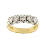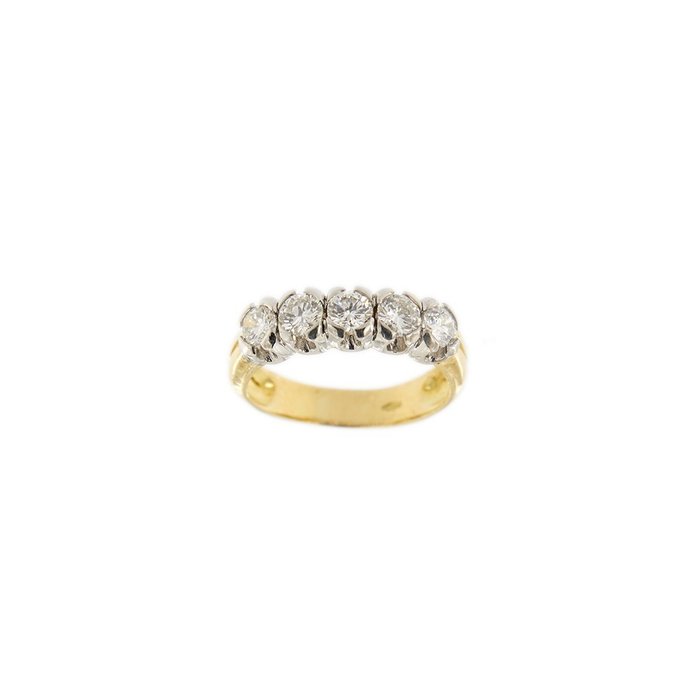 Rivière ring in geelgoud en witgoud 18 kt 750/1000 met 5 briljant geslepen diamanten van 0,20 ct cd. , totaal 1.00 ct - GH kleur en VS helderheid.