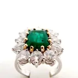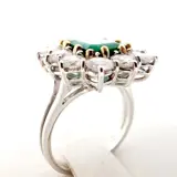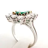 Wit- en geelgouden ring met: -1 achthoekig geslepen smaragd van 1.00 ct en 12 diamanten van elk 0.10 ct. - Totaal karaat 1,20