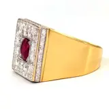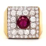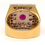 Ring in geelgoud, 18 karaat witgoud met 1 robijn van 1,40 ct en 40 diamanten van in totaal 2,50 ct