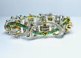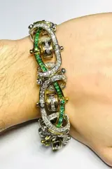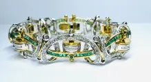 Art deco armband in 18kt goud met diamanten en smaragden.