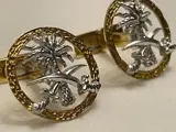 Paar 18kt geel- en witgouden manchetknopen, in de vorm van het nationale embleem van Saoedi-Arabië, 10 g (gepresenteerd aan en uit de privécollectie van Sir Bernard Ingham)